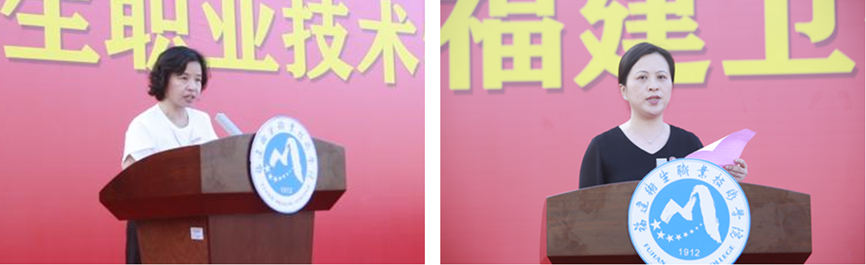 中醫(yī)康復(fù)技術(shù)專(zhuān)業(yè)負(fù)責(zé)人徐麗鶯作為教師代表發(fā)言,她帶著同學(xué)們回憶了酸甜苦辣的校園生活,希望畢業(yè)生們不忘初心、砥礪前行;生命不息、學(xué)習(xí)不止;腳踏實(shí)地,勇往直前。