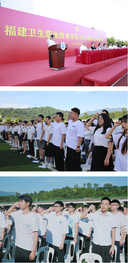 隨后,全體畢業(yè)生在輔導(dǎo)員代表陳清清老師的帶領(lǐng)下進(jìn)行了畢業(yè)誓詞的宣誓:“健康所系,性命相托……”鏗鏘有力的畢業(yè)誓言激蕩在會(huì)場(chǎng)上空。