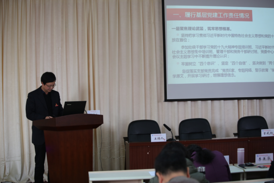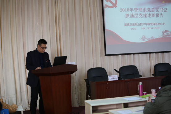 1月22日下午,我院2018年度黨支部書記抓黨建述職現(xiàn)場(chǎng)報(bào)告及測(cè)評(píng)會(huì)在行政樓六樓第三會(huì)議室舉行。學(xué)院黨委委員、二級(jí)院(系)黨總支負(fù)責(zé)人、中層正職干部、基層黨員干部、教代會(huì)代表及師生代表共82人參會(huì)。會(huì)議由黨委工作部部長(zhǎng)吳華主持。