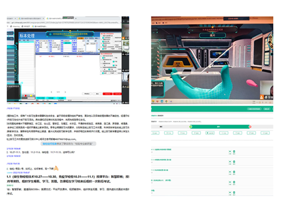 課前,生物化學(xué)教研室迅速組織教師進(jìn)行線上集體備課,就如何開展線上實(shí)訓(xùn)教學(xué)進(jìn)行深入討論,形成教師講授、視頻演示、軟件實(shí)操“講、演、做”一體的線上實(shí)訓(xùn)教學(xué)方案。同時(shí),針對(duì)20級(jí)部分實(shí)習(xí)生因疫情暫停實(shí)習(xí)的情況,教研室討論制定了醫(yī)學(xué)檢驗(yàn)專業(yè)學(xué)生線上實(shí)習(xí)方案。課中,教師利用虛擬仿真軟件向?qū)嵙?xí)生講解實(shí)踐操作關(guān)鍵技術(shù),借助智慧職教平臺(tái)發(fā)布教學(xué)資源,夯實(shí)線上實(shí)習(xí)學(xué)生理論基礎(chǔ)。