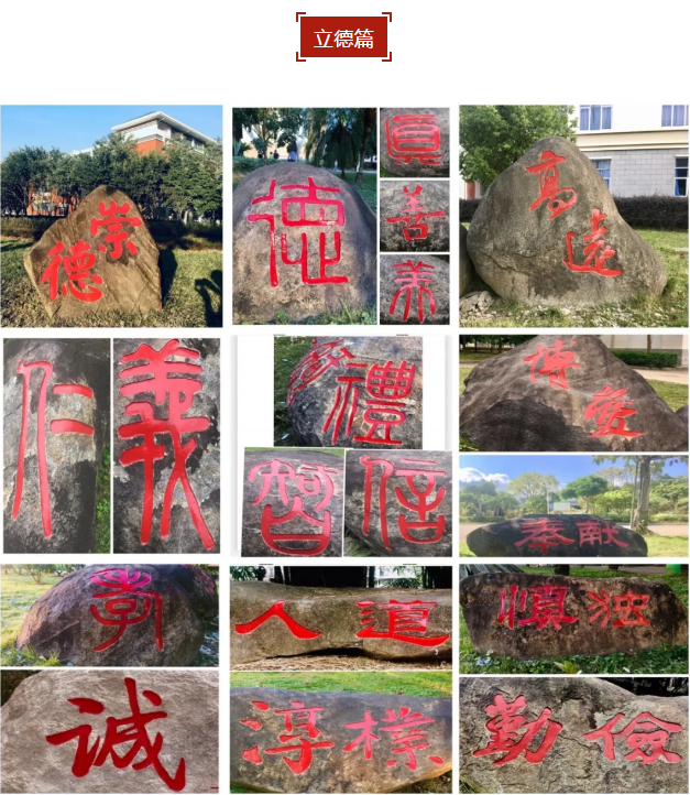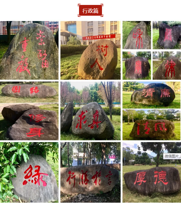項目負(fù)責(zé)人、福建省書法家協(xié)會會員洪常青老師花費3個多月時間,精心擬定石刻內(nèi)容,精心設(shè)計指導(dǎo)施工,使校園綠地原有景觀石得到了“升級”。