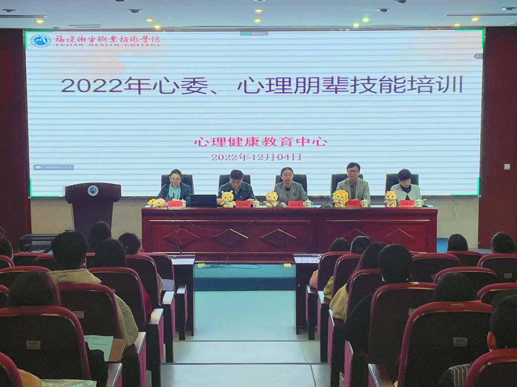 為加強學(xué)校心理健康教育工作,發(fā)揮學(xué)校心理輔導(dǎo)陣地作用,12月4日,我校2022年心理委員、心理朋輩技能培訓(xùn)在實訓(xùn)樓學(xué)術(shù)報告廳舉行。副校長黃銘珊、心理健康教育中心主要負責(zé)人及全體心理健康教育中心成員出席開班儀式。本次培訓(xùn)由校心理健康教育中心主辦,益心心理協(xié)會協(xié)辦,2022級心理委員、各二級心理輔導(dǎo)站成員、益心心理協(xié)會成員以及心緣小分隊成員共180人參加。
