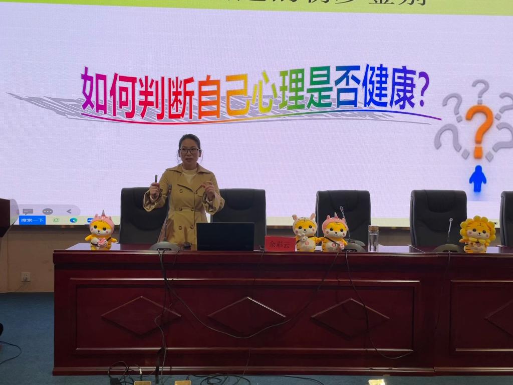 余彩云老師通過“一方樹人”活動熱身,為大家進一步介紹了大學(xué)生常見的心理問題,講解了心理問題和心理疾病的區(qū)別以及調(diào)適的方法。