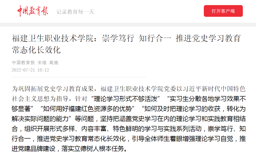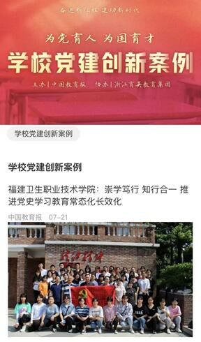 《福建衛(wèi)生職業(yè)技術學院:崇學篤行 知行合一 推進黨史學習教育常態(tài)化長效化》(2022年7月21日)