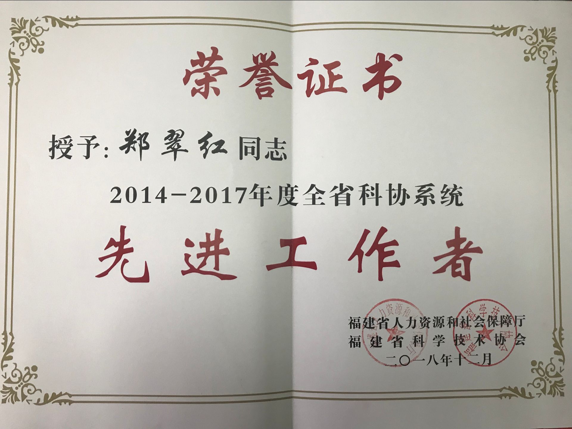 會議表彰了全省科協(xié)系統(tǒng)先進集體和先進工作者,我院鄭翠紅教授榮獲全省科協(xié)系統(tǒng)先進工作者稱號。