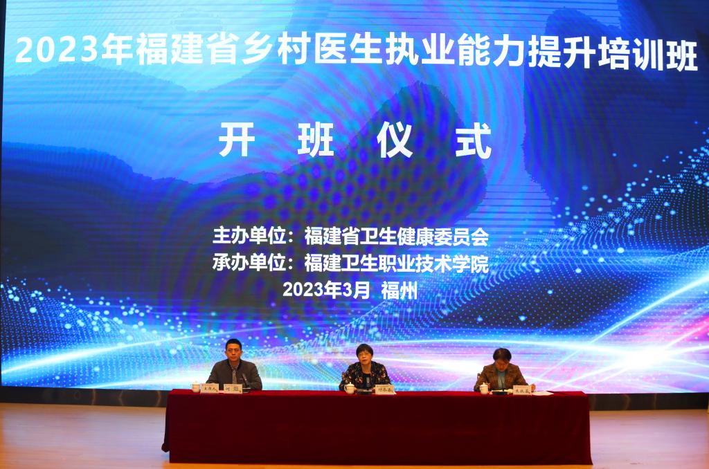 3月27日,2023年福建省鄉(xiāng)村醫(yī)生執(zhí)業(yè)能力提升培訓班開班儀式在我校學術廳舉行。福建省衛(wèi)生健康委員會(以下簡稱省衛(wèi)健委)基層處處長付冬香、學校副校長朱扶蓉出席儀式并講話。護理學院、醫(yī)學院、健康管理系等院系負責人及340名鄉(xiāng)村醫(yī)生參加開班儀式。開班儀式由繼續(xù)教育學院副院長何烜主持。