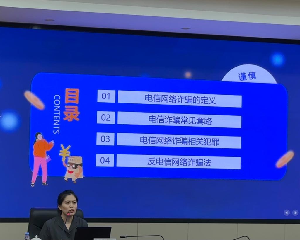 此次培訓(xùn)由閩侯縣人民法院陳葉玲擔(dān)任宣講人,她圍繞電信網(wǎng)絡(luò)詐騙的定義、電信詐騙常見套路、電信網(wǎng)絡(luò)詐騙相關(guān)犯罪、反電信網(wǎng)絡(luò)詐騙法四個(gè)方面,通過案例分析,以通俗易懂的語言講解了常見詐騙案件的特點(diǎn)和犯罪分子的慣用手法、作案方式、識(shí)別和防范技巧。