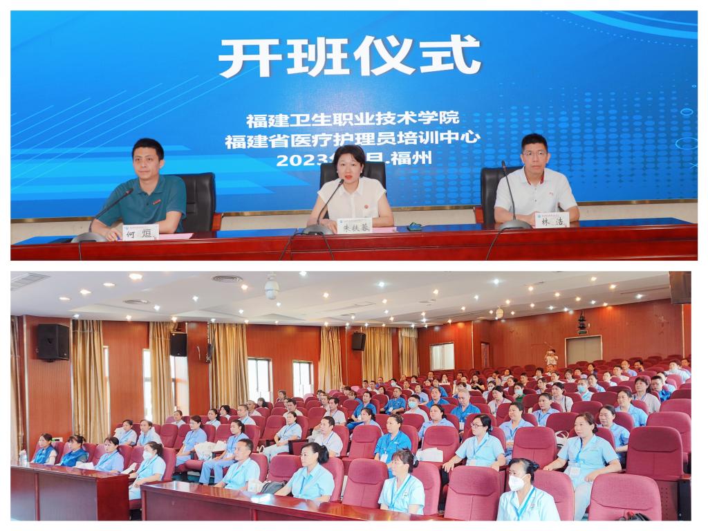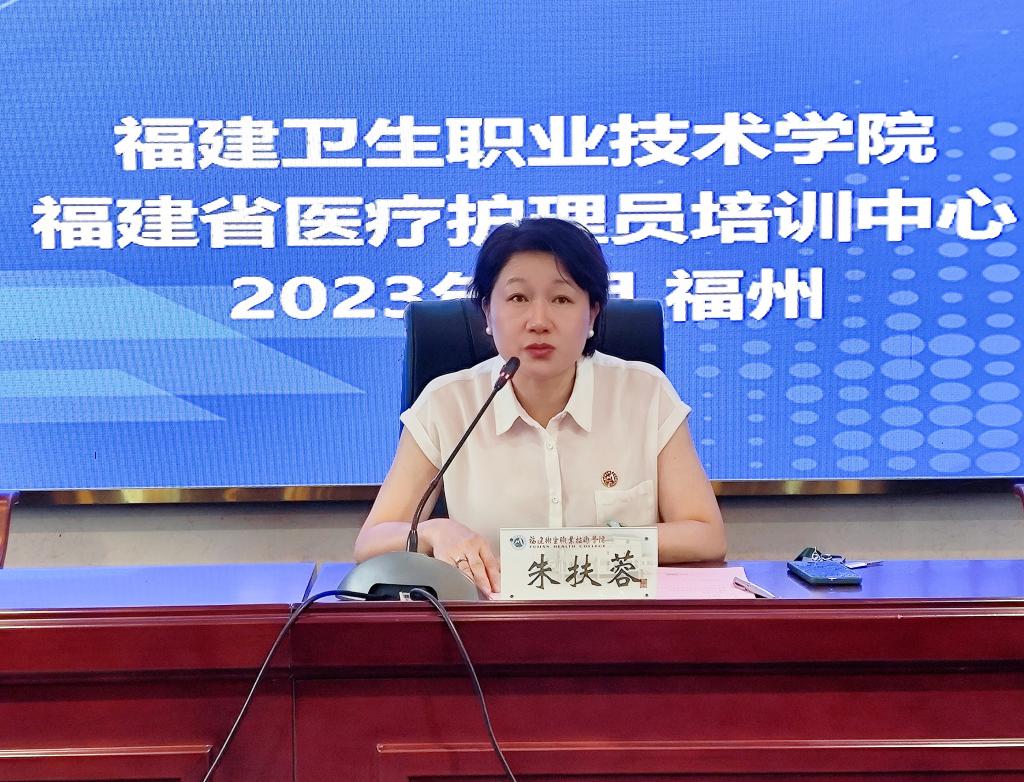 開(kāi)班儀式上,朱扶蓉首先代表學(xué)校對(duì)參加開(kāi)班儀式的領(lǐng)導(dǎo)、老師和學(xué)員表示歡迎,向福建省衛(wèi)健委、福建省人社廳和福建省財(cái)政廳對(duì)培訓(xùn)工作的大力支持表示感謝,并就培訓(xùn)班的情況做了簡(jiǎn)要介紹。她表示,醫(yī)療護(hù)理員培訓(xùn)和規(guī)范管理是加快發(fā)展護(hù)理服務(wù)業(yè)、增加護(hù)理服務(wù)供給的關(guān)鍵環(huán)節(jié),是健全社會(huì)服務(wù)體系、持續(xù)提升服務(wù)能力的重要舉措。此次培訓(xùn)班,旨在加強(qiáng)醫(yī)療護(hù)理人員的職業(yè)素養(yǎng)、專(zhuān)業(yè)技能和服務(wù)態(tài)度等方面的能力培養(yǎng)。希望各位學(xué)員,要深刻認(rèn)識(shí)醫(yī)療護(hù)理員職業(yè)的重要性、認(rèn)識(shí)開(kāi)展醫(yī)療護(hù)理員培訓(xùn)的重要意義,增強(qiáng)職業(yè)認(rèn)同感;珍惜學(xué)習(xí)機(jī)會(huì),虛心求學(xué),掌握基本技能,提高服務(wù)質(zhì)量;遵守培訓(xùn)紀(jì)律,嚴(yán)格要求自己,切實(shí)做到學(xué)有所獲、學(xué)有所得、學(xué)有所成。