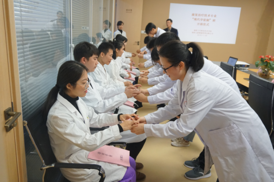 開(kāi)班儀式上,黃銘珊副院長(zhǎng)表示,“現(xiàn)代學(xué)徒制”教育架起了學(xué)校與行業(yè)之間的橋梁,使學(xué)生職業(yè)教育更具有社會(huì)性、實(shí)踐性、專(zhuān)業(yè)性和操作性。學(xué)院將與福建元新健康管理有限公司共同努力,以“現(xiàn)代學(xué)徒制”班為載體,共同探討康復(fù)治療技術(shù)專(zhuān)業(yè)的學(xué)院、企業(yè)雙主體育人新模式。隨后,福建元新健康管理有限公司陳鋒總裁對(duì)加入元新康復(fù)這個(gè)大家庭的同學(xué)們表示歡迎,并介紹了公司的創(chuàng)業(yè)歷程與大力推進(jìn)“提高中國(guó)人健康水平”的企業(yè)戰(zhàn)略。陳總表示公司的蓬勃發(fā)展也助推了福建區(qū)域康復(fù)領(lǐng)域的發(fā)展,同時(shí)通過(guò)與院校對(duì)接、引進(jìn)康復(fù)專(zhuān)業(yè)人才的方式,可更好地促進(jìn)企業(yè)的自身發(fā)展。