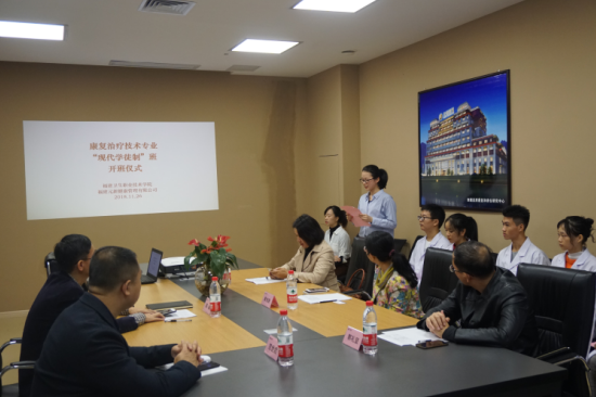 11月26日,我院與福建元新健康管理有限公司聯(lián)合開(kāi)辦的2017級(jí)康復(fù)治療技術(shù)專(zhuān)業(yè)“現(xiàn)代學(xué)徒制”班開(kāi)班儀式在福建元新健康管理有限公司舉行。我院黃銘珊副院長(zhǎng)、教務(wù)處朱扶蓉處長(zhǎng)、臨床醫(yī)學(xué)系郭禮堅(jiān)主任,福建元新健康管理公司陳鋒總裁、醫(yī)務(wù)部的范世垚主任共同出席,企業(yè)導(dǎo)師團(tuán)隊(duì)、我院康復(fù)教研室全體教師以及17康復(fù)治療技術(shù)301班全體同學(xué)參加本次開(kāi)班儀式。