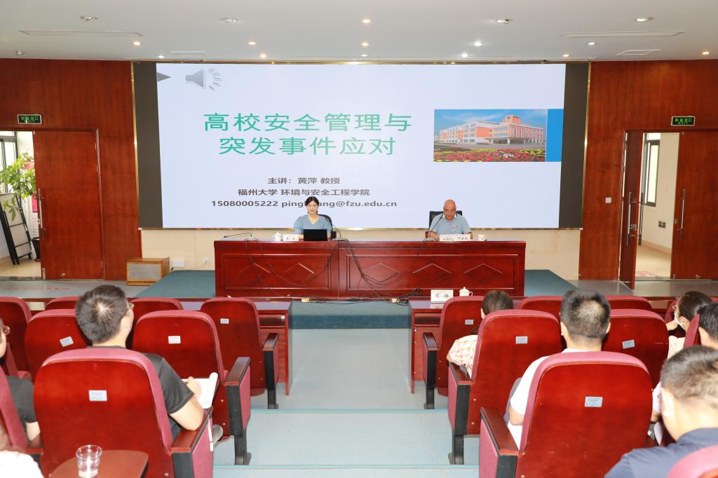 為進(jìn)一步落實(shí)校園安全主體責(zé)任,強(qiáng)化教職員工應(yīng)對(duì)突發(fā)事件的應(yīng)急處置能力。8月31日下午,學(xué)校特邀福州大學(xué)環(huán)境與安全工程學(xué)院黃萍教授為我校作《高校安全管理與突發(fā)事件應(yīng)對(duì)》專(zhuān)題安全講座,全體中層干部、實(shí)訓(xùn)中心負(fù)責(zé)人、輔導(dǎo)員及各部門(mén)安全員參加會(huì)議。