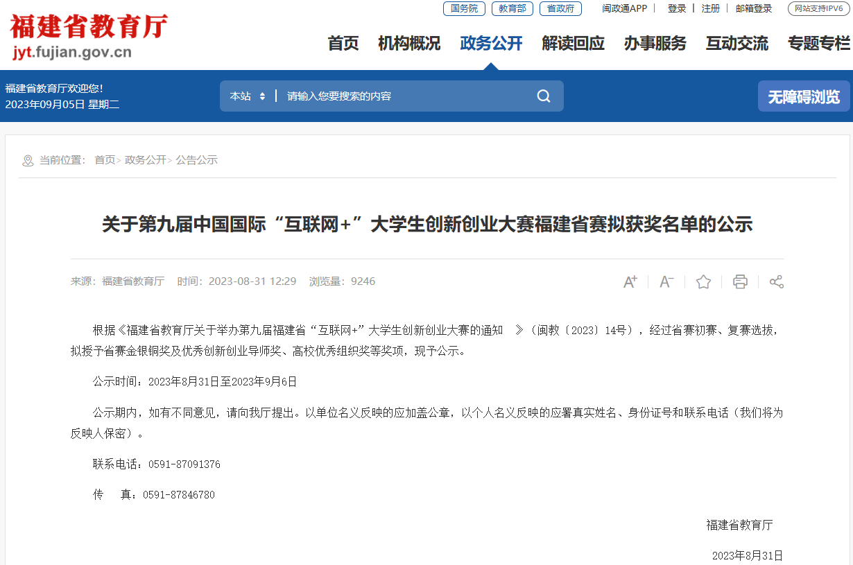 第九屆福建省“互聯(lián)網(wǎng)+”大學(xué)生創(chuàng)新創(chuàng)業(yè)大賽由福建省教育廳、福建省委統(tǒng)戰(zhàn)部、福建省委網(wǎng)信辦、福建省發(fā)改委、福建省工信廳、福建省人社廳、福建省農(nóng)業(yè)農(nóng)村廳、福建省市場(chǎng)監(jiān)管局(福建省知識(shí)產(chǎn)權(quán)局)、共青團(tuán)福建省委、福建省科協(xié)、福建省中華職教社等部門共同主辦,福州大學(xué)、黎明職業(yè)大學(xué)分別承辦,福建教育電視臺(tái)、福建省創(chuàng)新創(chuàng)業(yè)創(chuàng)造教育指導(dǎo)委員會(huì)等單位參與協(xié)辦。據(jù)悉,本屆大賽共吸引全省247所學(xué)校的85萬(wàn)名師生,近22.3萬(wàn)個(gè)項(xiàng)目報(bào)名參賽,參賽人數(shù)、項(xiàng)目數(shù)均創(chuàng)歷史新高。