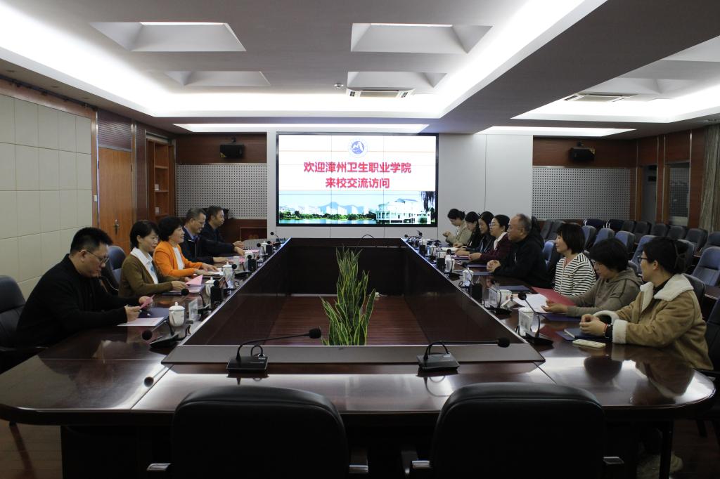 11月16日下午,漳州衛(wèi)生職業(yè)學院黨委書記陳超、校長何堅等一行來校調研交流。我校校長許能鋒在行政樓四樓會議室會見陳超一行并舉行座談,黨委副書記李美華、副校長黃銘珊及黨政辦公室、人事處、財務處、護理學院、資產管理與招標采購中心負責人參加座談。