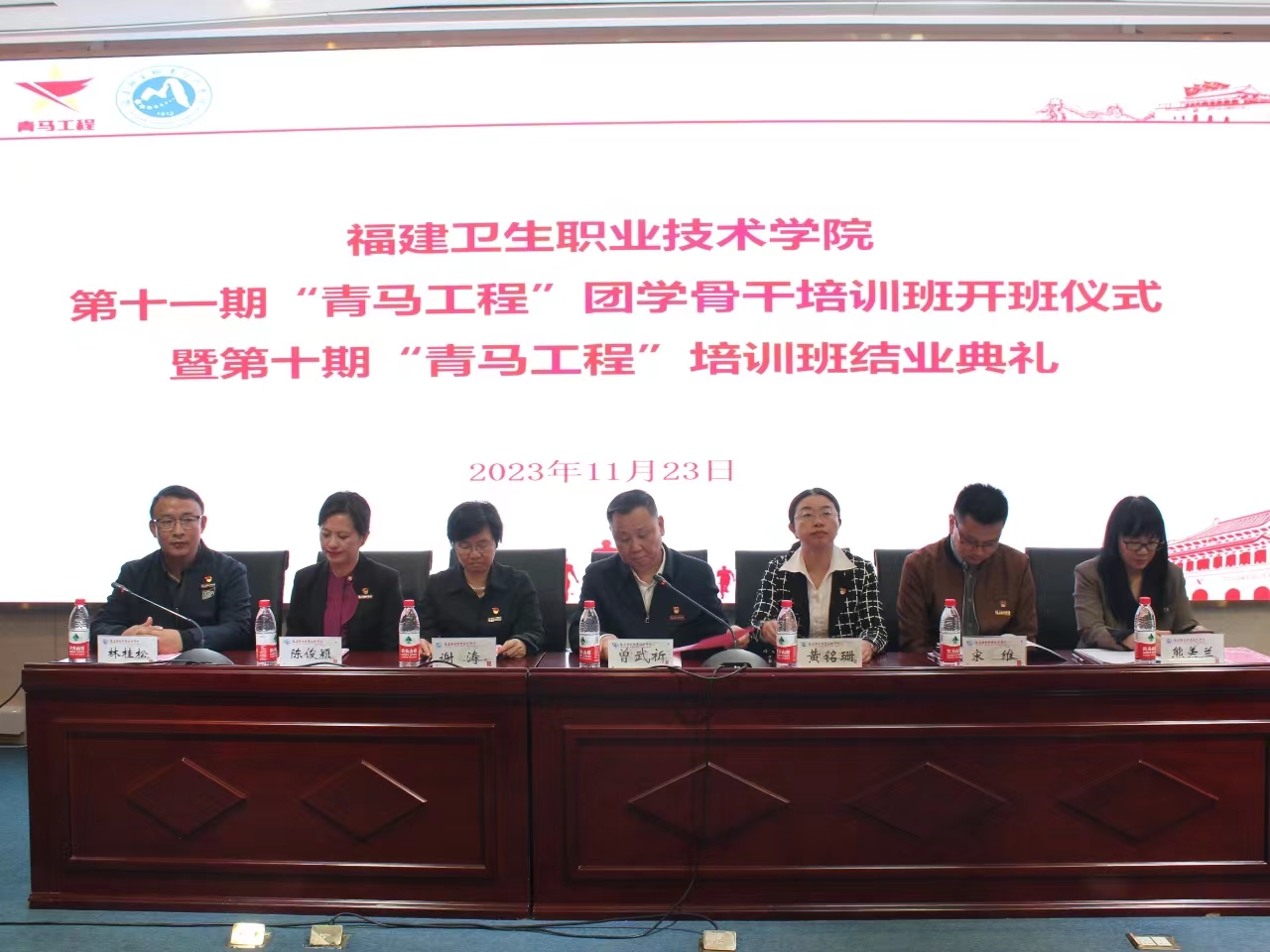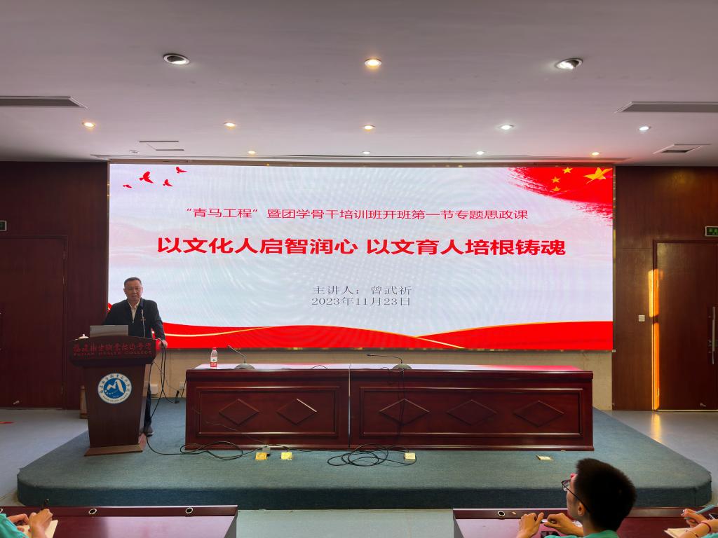 2023年11月23日下午,我校第十一期“青馬工程”團學(xué)骨干培訓(xùn)班開班儀式暨第十期“青馬工程”團學(xué)骨干培訓(xùn)班結(jié)業(yè)典禮在實訓(xùn)樓四樓報告廳順利舉行。校黨委書記曾武祈、副校長黃銘珊出席儀式,組織統(tǒng)戰(zhàn)部、宣傳部、學(xué)生工作部、馬克思主義學(xué)院、團委、各院系黨團組織負(fù)責(zé)人以及115名第十一期“青馬工程”學(xué)員參加儀式。儀式結(jié)束,曾武祈為青馬學(xué)員講授開班第一節(jié)專題思政課。