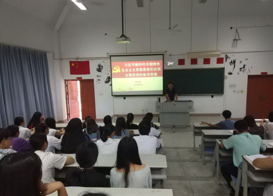 黨課中,曾武祈書記主要從習(xí)近平新時代中國特色社會主義思想的立論基礎(chǔ)、奮斗目標(biāo)、根本路徑、重要保障和領(lǐng)導(dǎo)力量五個層面出發(fā),以歷史方位論、民族復(fù)興論、人民中心論、發(fā)展理念論、兩大布局論、戰(zhàn)略安排論、強(qiáng)軍戰(zhàn)略論、命運(yùn)共同體論、深化改革論和強(qiáng)大政黨論為習(xí)近平新時代中國特色社會主義思想十大要義,為在座師生黨員、入黨積極分子、學(xué)生代表解讀了習(xí)近平新時代中國特色社會主義思想的精神實質(zhì)和豐富內(nèi)涵。此外,曾武祈書記還從入黨誓詞的由來、我黨不同時期的誓詞以及不同時期入黨誓詞的意義三方面解讀了我們?nèi)朦h誓詞的歷史演變。