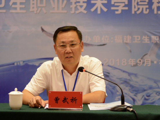 福建衛(wèi)生職業(yè)技術(shù)學(xué)院校企合作理事會理事長、福建衛(wèi)生職業(yè)技術(shù)學(xué)院黨委書記曾武祈講話