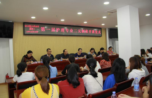 10月9日,我院鄭翠紅副院長(zhǎng)率隊(duì)前往閩侯縣醫(yī)院舉行與醫(yī)院合作開(kāi)辦的首屆護(hù)理二元制班開(kāi)班儀式。閩侯縣衛(wèi)計(jì)局陳才鏗副局長(zhǎng)、學(xué)院和醫(yī)院雙方有關(guān)領(lǐng)導(dǎo)、職能科室和系部負(fù)責(zé)人及全體35名學(xué)員參加了開(kāi)班儀式。開(kāi)班儀式由醫(yī)院王碧云書(shū)記主持。