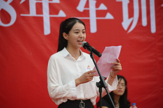 陳曉涵同學作為新生代表發(fā)言。她說,大學,并不是高考后的休息驛站,并不是想象中的“快樂的大學”,而是充滿挑戰(zhàn)、全新的求學旅途,“大學是奮斗出來的”,只有充分規(guī)劃未來,才是對自己的人生負責。