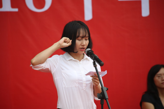 師生代表發(fā)言后,全體新生進行了醫(yī)學生誓言的莊嚴宣誓,由輔導員陳清清老師領(lǐng)誓。一句句誠摯的誓言響徹校園,讓在場每一位初入校門的醫(yī)學生深深體會到作為一名醫(yī)學生所肩負的責任和使命。