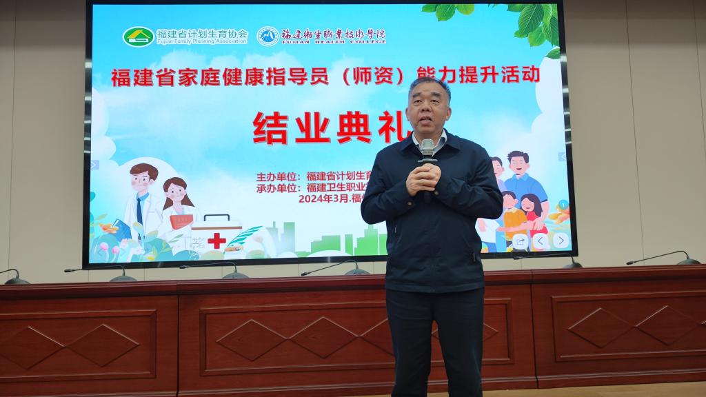 為深入貫徹落實(shí)健康中國戰(zhàn)略,進(jìn)一步規(guī)范培養(yǎng)家庭健康指導(dǎo)員師資隊(duì)伍,3月25日至30日,受福建省計(jì)劃生育協(xié)會委托,全省第二期家庭健康指導(dǎo)員(師資)能力提升活動在我校舉行。3月30日,活動結(jié)業(yè)典禮在我校厚德樓六樓會議室舉行,省計(jì)生協(xié)黨組成員、專職副會長劉騰發(fā)出席結(jié)業(yè)典禮并作總結(jié)講話。