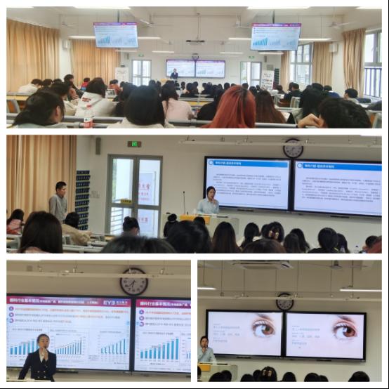 當(dāng)天,福州愛爾眼科醫(yī)院有限公司、福州普瑞眼科門診有限公司兩家單位受邀入校,圍繞職場特點(diǎn)、職業(yè)定位、職業(yè)規(guī)劃、企業(yè)文化等方面展開宣講,助力學(xué)生就業(yè)。
