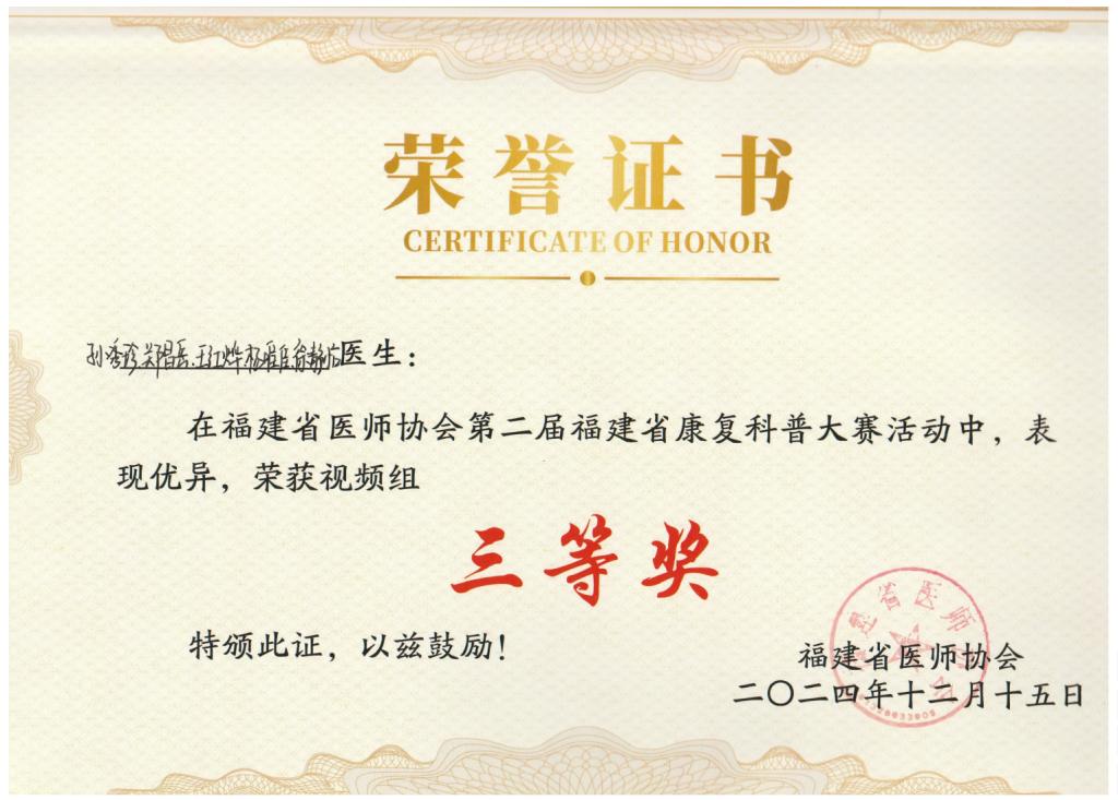 喜報 | 我校學(xué)生在福建省醫(yī)師協(xié)會第二屆康復(fù)科普大賽中喜獲佳績