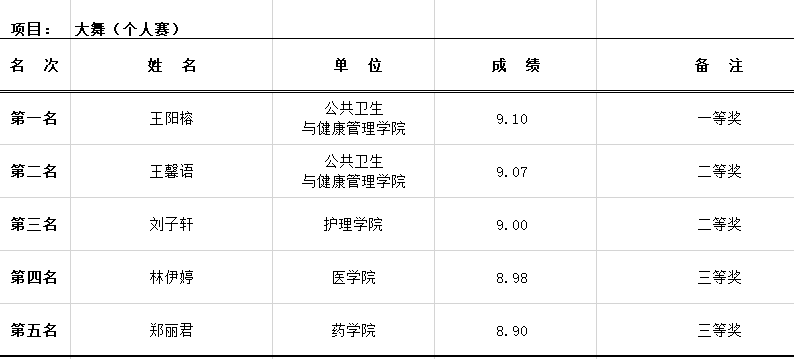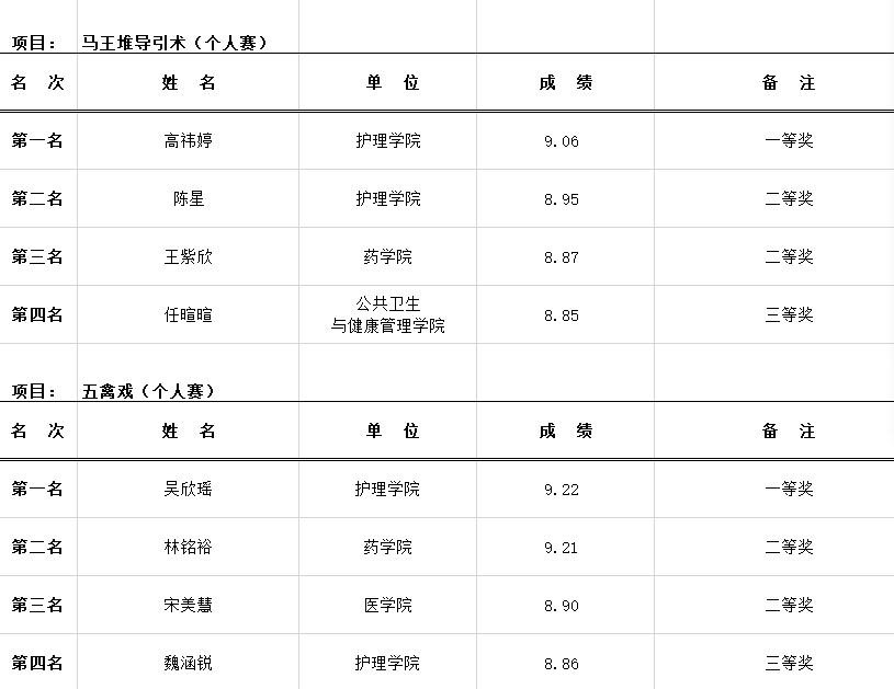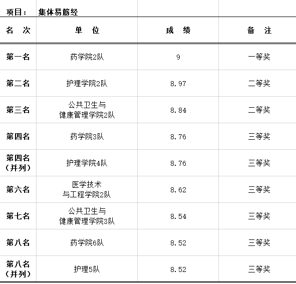 經(jīng)過激烈的角逐,護理學(xué)院榮獲團體總分一等獎,公共衛(wèi)生與健康管理學(xué)院、藥學(xué)院獲團體總分二等獎,醫(yī)學(xué)院、醫(yī)學(xué)技術(shù)與工程學(xué)院獲團體總分三等獎。