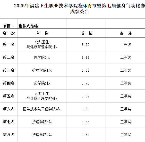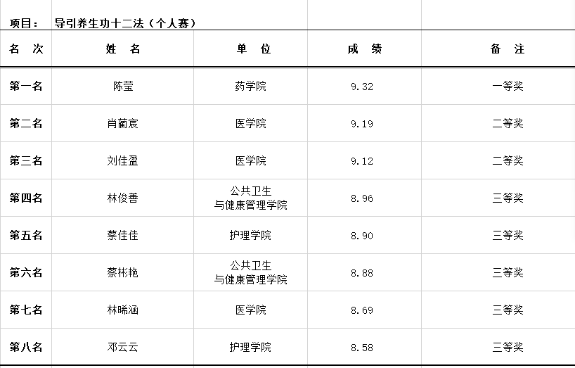 近年來,學(xué)校高度重視中華優(yōu)秀傳統(tǒng)文化傳承與體育工作融合,將健身氣功納入體育健康課程體系,通過“以賽促學(xué)、以賽促練”,深化“體育+醫(yī)療”協(xié)同育人的創(chuàng)新實踐,引導(dǎo)學(xué)生傳承中華優(yōu)秀傳統(tǒng)文化,做健康生活的踐行者和青春夢想的追夢人!