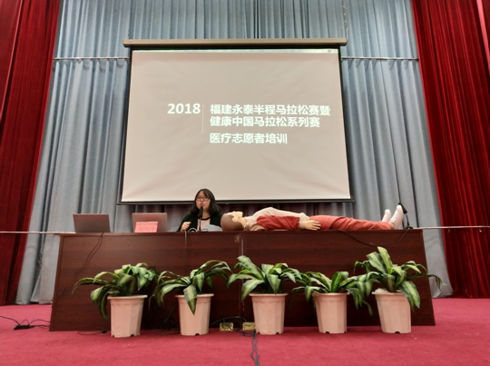 3月11日下午,2018福建永泰半程馬拉松賽暨健康中國(guó)馬拉松系列賽醫(yī)療志愿者培訓(xùn)大會(huì)在福建衛(wèi)生職業(yè)技術(shù)學(xué)院學(xué)術(shù)廳舉行,由學(xué)院團(tuán)委組織招募的255名志愿者參加,他們分別來(lái)自學(xué)生紅十字會(huì)、護(hù)理系和臨床醫(yī)學(xué)系。組委會(huì)黃宗毅老師和省紅十字急救培訓(xùn)中心鄭明華老師為志愿者進(jìn)行了強(qiáng)化培訓(xùn)。志愿者們將在沿途賽道及主會(huì)場(chǎng),發(fā)揮自己專業(yè)所長(zhǎng)協(xié)助組委會(huì)和醫(yī)護(hù)人員為參賽者提供醫(yī)療救助服務(wù)。