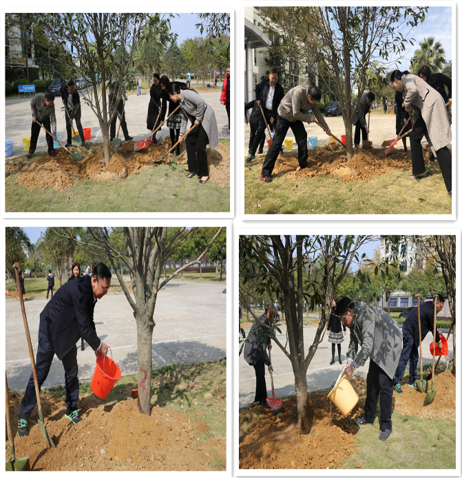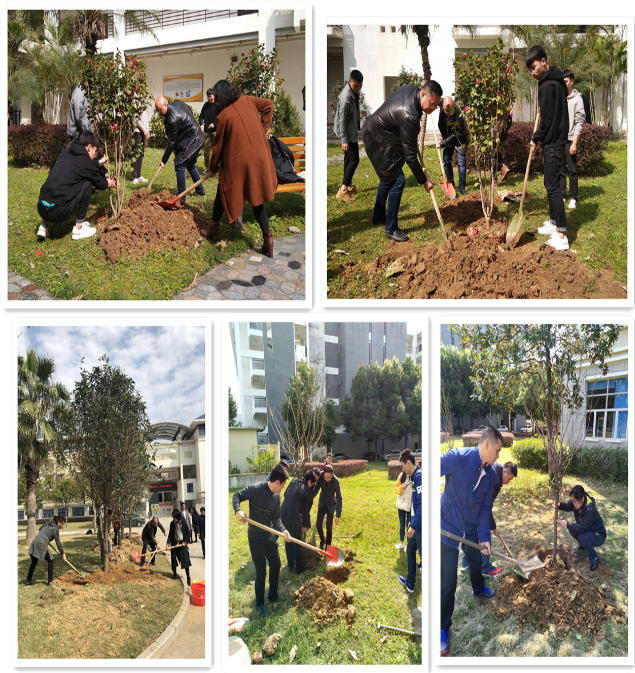 為貫徹落實黨的十九大對生態(tài)文明建設(shè)作出的戰(zhàn)略部署,建設(shè)美麗校園,我院組織開展“讓綠色妝點校園,讓師生共享美麗”主題植樹活動。 3月12日上午,曾武祈書記、蘇友新院長等院領(lǐng)導(dǎo)帶領(lǐng)各職能部門、各系部負(fù)責(zé)人及學(xué)生代表參加本次植樹活動?;顒蝇F(xiàn)場眾人熱情高漲,揚鎬揮鏟,培土澆水,一片熱火朝天而又井然有序的景象。大家用實際行動為美麗校園建設(shè)再添一抹絢麗的綠意。