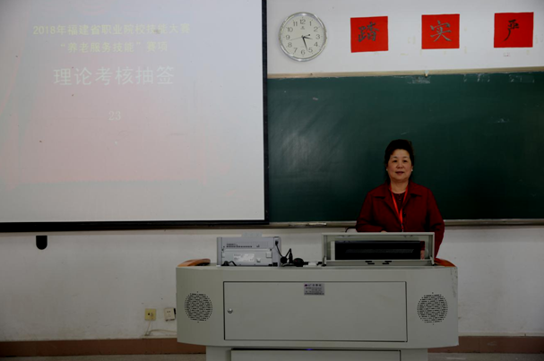 3月24日至25日,由福建省教育廳、福建省人力資源和社會(huì)保障廳、福建省農(nóng)業(yè)廳、福建省衛(wèi)生和計(jì)劃生育委員會(huì)、福建省總工會(huì)、共青團(tuán)福建省委、福建省中華職業(yè)教育社主辦,福建衛(wèi)生職業(yè)技術(shù)學(xué)院承辦的“2018年福建省職業(yè)院校技能大賽(養(yǎng)老服務(wù)技能賽項(xiàng))”正式開賽。來自福建省5所高職院校共10名選手參加了此次比賽。本次大賽由姜小鷹教授任裁判長,裁判組由6位資深的養(yǎng)老護(hù)理專家組成。