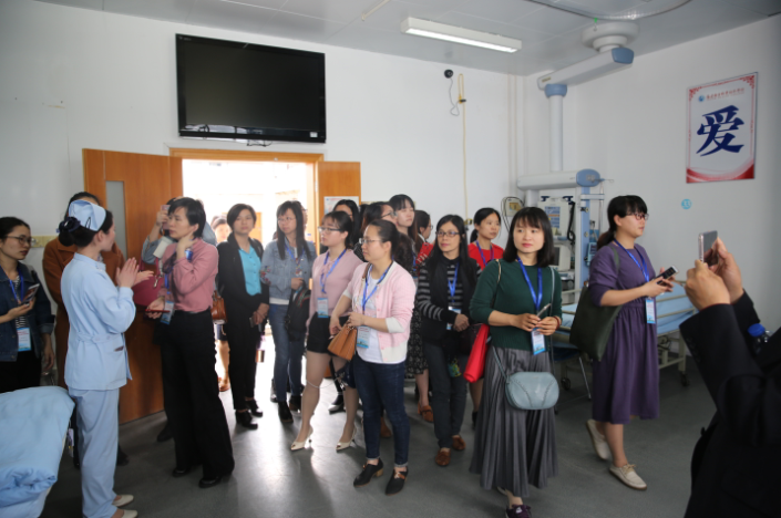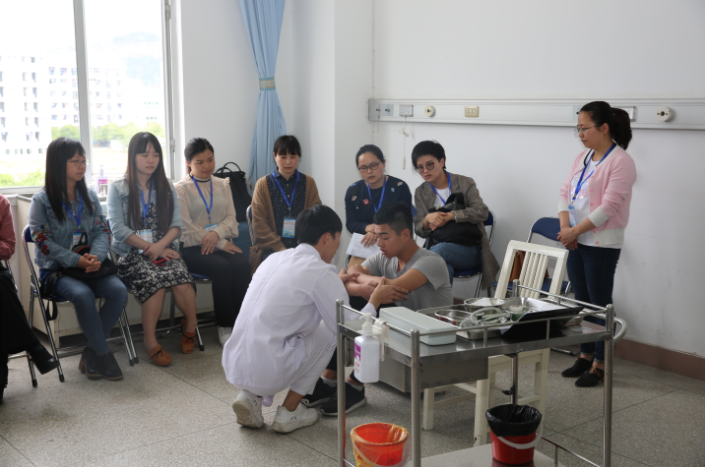 學(xué)員到我院護(hù)理系參觀,認(rèn)真觀看我院2018年福建省護(hù)理技能大賽一等獎選手演示。