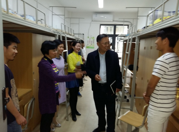 隨后,曾武祈書(shū)記來(lái)到D棟宿舍,與對(duì)接聯(lián)系的203號(hào)宿舍學(xué)生親切交流。曾書(shū)記對(duì)該宿舍六位學(xué)生逐一認(rèn)識(shí);然后他從宿舍生活、業(yè)余文化生活以及人際交往等方面與學(xué)生進(jìn)行深入細(xì)致的溝通,進(jìn)一步了解他們的學(xué)習(xí)生活情況;最后,曾書(shū)記希望同學(xué)們?cè)趯W(xué)習(xí)上拼搏爭(zhēng)優(yōu)的同時(shí)豐富課余文化生活,充實(shí)過(guò)好每一天。