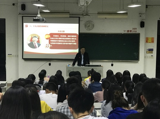 曾書記為讓學(xué)生深刻認(rèn)識學(xué)習(xí)十九大精神的重大意義,準(zhǔn)確把握核心要義,從“十一個新”:新在時代背景、新在實(shí)踐基礎(chǔ)、新在歷史使命、新在理論貢獻(xiàn)、新在人民至上、新在文化自信、新在社會治理、新在尊重自然、新在強(qiáng)軍之路、新在外交理念、新在從嚴(yán)治黨十一個方面對十九大報(bào)告做詳細(xì)的解讀。曾書記希望與會同志能夠準(zhǔn)確把握黨的十九大精神的思想精神和核心要義,自覺用習(xí)近平新時代中國特色社會主義思想武裝頭腦,爭當(dāng)新時代的新青年。