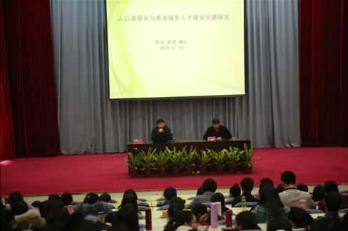 1月25日下午,中國高等職業(yè)教育研究會秘書長、全國養(yǎng)老產(chǎn)業(yè)教育聯(lián)盟顧問、全國健康與養(yǎng)老專委會榮譽主任羅志教授蒞臨我院,在學院學術(shù)廳舉辦了《人口老齡化與養(yǎng)老服務人才建設(shè)發(fā)展研究》專題講座。講座由蘇友新院長主持,黃銘珊副院長、鄭翠紅副院長及全體教職工聆聽了本次講座。