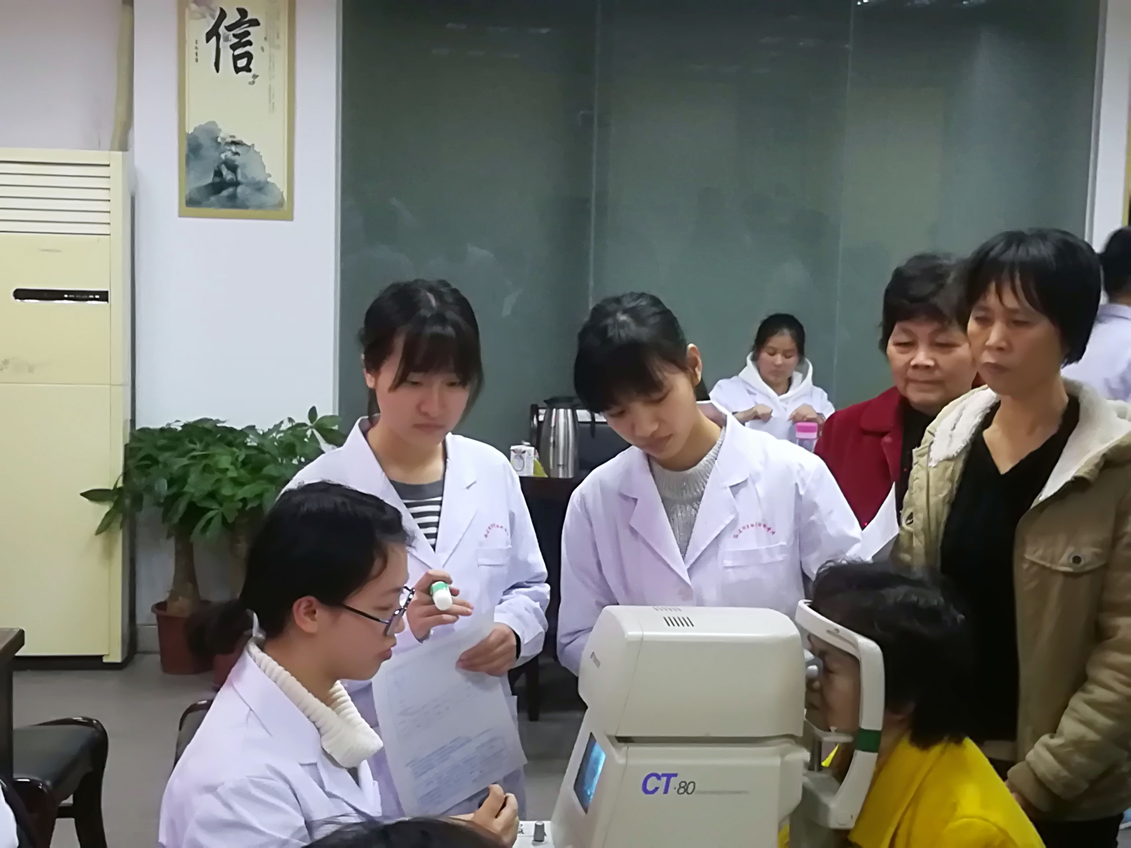 為大力踐行十九大精神,培育和宣傳社會(huì)主義核心價(jià)值觀,大力弘揚(yáng)“精益求精,注重細(xì)節(jié),精致專(zhuān)一”的工匠精神和“奉獻(xiàn)、友愛(ài)、互助、進(jìn)步”的志愿服務(wù)精神,展現(xiàn)我院眼視光技術(shù)專(zhuān)業(yè)校企合作的成果,推進(jìn)“兩學(xué)一做”學(xué)習(xí)教育活動(dòng)常態(tài)化制度化,2017年12月7日上午,醫(yī)學(xué)技術(shù)系眼視光技術(shù)專(zhuān)業(yè)3名教師黨員帶領(lǐng)8名學(xué)生入黨積極分子聯(lián)合福州東南眼科醫(yī)院走進(jìn)鰲峰社區(qū)服務(wù)中心開(kāi)展主題為“踐行十九大,定期查眼底,控制糖網(wǎng)病”的職業(yè)教育活動(dòng)暨黨日活動(dòng)。