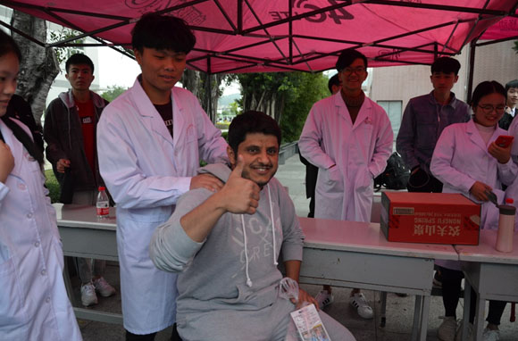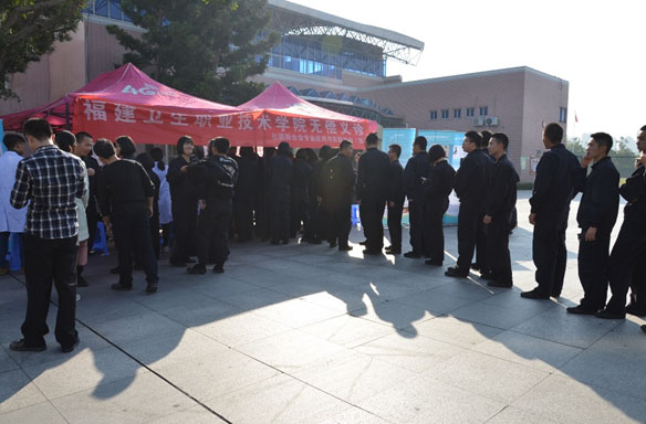 福建警察學(xué)院法律系的王琦老師帶領(lǐng)同學(xué)們領(lǐng)略了警院的風(fēng)光,隨后同學(xué)們來(lái)到了模擬法庭,通過(guò)最真實(shí)的模擬庭審讓同學(xué)們身臨其境地了解到有關(guān)法律法規(guī),具有較強(qiáng)的普法意義。與此同時(shí),職教宣傳的活動(dòng)正如火如荼地進(jìn)行,我院康健俱樂(lè)部、專業(yè)應(yīng)用與實(shí)踐協(xié)會(huì)、團(tuán)員先鋒隊(duì)為警院的同學(xué)們帶去了保健按摩、拔罐、血型檢驗(yàn)、血壓測(cè)量等義診項(xiàng)目,徐麗鶯老師與王欽敏老師通過(guò)現(xiàn)場(chǎng)示教的方式,讓警院的師生們感受到耳穴療法的魅力,活動(dòng)現(xiàn)場(chǎng)十分火爆,吸引了警院沙特班同學(xué)的圍觀。宣講活動(dòng)后,我院臨床系代表隊(duì)與警察學(xué)院法律二隊(duì)進(jìn)行了籃球友誼賽,球員們?cè)谫悎?chǎng)上努力拼搏,通過(guò)籃球賽拉近了距離,增進(jìn)了友誼。