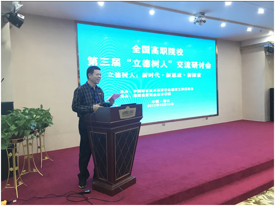 2017年12月15至16日,“新時(shí)代 新思政 新探索”全國高職院校第三屆“立德樹人”交流研討會(huì)在??谡匍_。會(huì)議由中國職業(yè)技術(shù)教育學(xué)會(huì)德育工作委員會(huì)主辦,海南經(jīng)貿(mào)職業(yè)技術(shù)學(xué)院承辦,來自全國各省(市區(qū))70余所高職院校的代表參加會(huì)議。我院作為中國職業(yè)技術(shù)教育學(xué)會(huì)德育工作委員會(huì)副主任單位,在林建團(tuán)副書記的帶領(lǐng)下,派代表參加了會(huì)議。