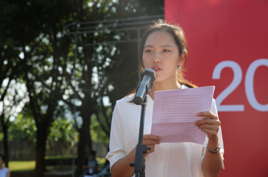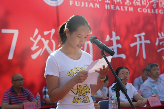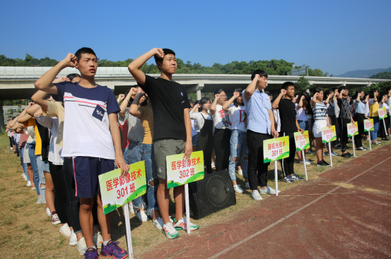 師生代表發(fā)言后,全體新生進行了《醫(yī)學生誓言》的莊嚴宣誓,由輔導員代表鄭冰老師領誓。