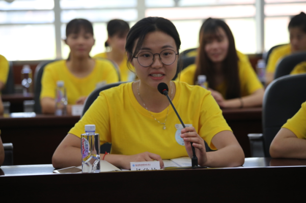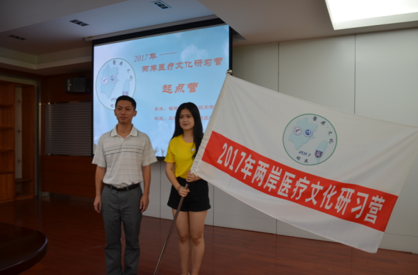 團省委學校部副部長黃承祖代表團省委講話,并為研習營授旗。福建衛(wèi)生職業(yè)技術學院林雯緯同學作為營員代表接旗。黃承祖副部長在講話中對研習營活動安排表示肯定,他指出,此次研習營圍繞醫(yī)療文化,展示福建衛(wèi)生事業(yè)發(fā)展,開展“小而精”的深度交流,是促進兩岸院校建立長效交流的好做法,希望福建衛(wèi)生職業(yè)技術學院能將研習營持續(xù)舉辦下去,將其打造成品牌活動。他希望通過研習活動,兩岸學子能深度交流,達到交流、交心、交朋友的目的。