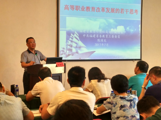 開(kāi)班儀式上福建省教育廳黨組成員、副廳長(zhǎng)陳國(guó)龍同志應(yīng)邀來(lái)我院作題為《高等職業(yè)教育改革發(fā)展的若干思考》的專題講座,從我省職業(yè)教育的發(fā)展歷程、改革任務(wù)兩個(gè)方面展開(kāi),強(qiáng)調(diào)高職院校要堅(jiān)持需求導(dǎo)向、問(wèn)題導(dǎo)向、效果導(dǎo)向,努力辦專辦特辦優(yōu),我省將繼續(xù)堅(jiān)持“補(bǔ)短板、抓內(nèi)涵、創(chuàng)特色、樹(shù)品牌”,努力把職業(yè)教育提升到新的水平。