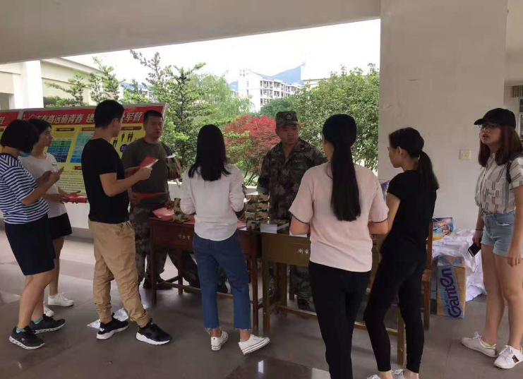 閩侯縣荊溪鎮(zhèn)武裝部工作人員應(yīng)邀來到我校,在校園分發(fā)征兵宣傳冊(cè)、征兵紀(jì)念品、為有意參軍入伍的學(xué)生做現(xiàn)場(chǎng)咨詢。