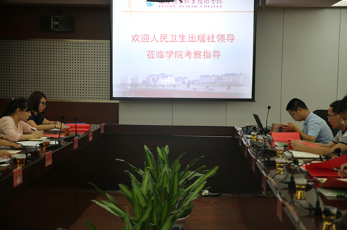 6月13日上午,人民衛(wèi)生出版社監(jiān)事會主席兼黨委副書記、紀委書記徐景蘭等一行九人蒞臨我院開展調(diào)研活動,院領導蘇友新、廖偉堅,腫瘤醫(yī)院放療科吳君心、教務處、圖書館、現(xiàn)代教育技術中心負責人以及各系部主任、副主任、人民衛(wèi)生出版社教材主編參加座談會,雙方圍繞以“深入研究教材建設,全面提升教材質(zhì)量,服務醫(yī)藥人才培養(yǎng)”為主題開展深入交流與探討。