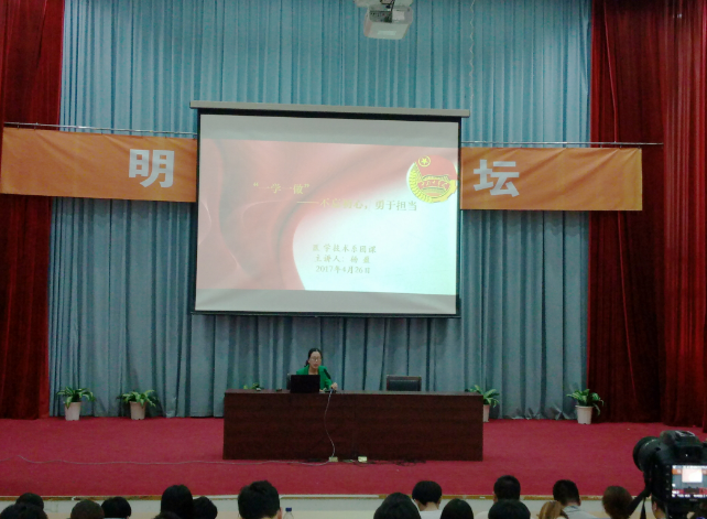近日,醫(yī)學(xué)技術(shù)系黨總支邱滾忠副書(shū)記和團(tuán)總支楊盈書(shū)記分別開(kāi)展了團(tuán)課講座。4月26日,團(tuán)總支楊盈書(shū)記以“不忘初心,勇于擔(dān)當(dāng)”為主題對(duì)2015級(jí)團(tuán)員進(jìn)行授課。首先,她對(duì)系部“一學(xué)一做”系列活動(dòng)做了全面宣傳動(dòng)員,指出學(xué)是前提和基礎(chǔ),做是著力點(diǎn)和落腳點(diǎn),強(qiáng)調(diào)了務(wù)必要落實(shí)“三會(huì)兩制一課”,要求所有團(tuán)員積極配合團(tuán)支部組織生活會(huì)的召開(kāi)。隨后通過(guò)漫畫(huà)的形式呼吁在座團(tuán)員們銘記自己的初心,做一名合格的團(tuán)員。
