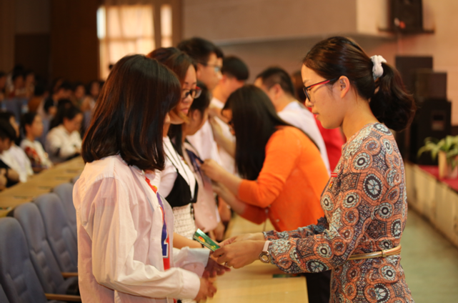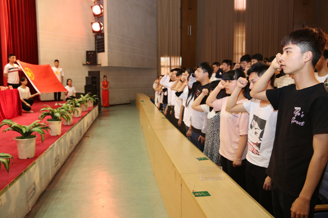 隨后,新團(tuán)員入團(tuán)儀式拉開序幕。在團(tuán)旗下,管理系團(tuán)總支書記邱麟老師帶領(lǐng)全體新團(tuán)員宣誓,老團(tuán)員代表重溫入團(tuán)誓詞。各系團(tuán)總支書記為新團(tuán)員代表佩戴團(tuán)徽、頒發(fā)團(tuán)員證。入團(tuán)介紹人代表林淼鑫宣讀了團(tuán)員的義務(wù)與權(quán)利。新團(tuán)員林曉敏及受表彰學(xué)生代表林明、江艷艷、洪秋萍、郭雅芬、房媛先后上臺(tái)發(fā)言,多角度進(jìn)行總結(jié)和交流,充分表達(dá)了發(fā)揚(yáng)“五四”傳統(tǒng),爭做時(shí)代青年先鋒的志向。