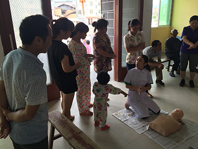 學(xué)院黨委書記林春明帶領(lǐng)護(hù)理系暑期“三下鄉(xiāng)”師生,來到到寧化縣河龍村走訪慰問了當(dāng)?shù)?個貧困學(xué)生家庭。副院長魏立娜帶領(lǐng)由26名師生志愿者組成的院三下鄉(xiāng)實踐隊前往寧德市屏南縣路下村開展志愿服務(wù)活動。期間,志愿者開展義診,為村民免費拔罐、推拿、按摩、測量血壓、講解并發(fā)放夏季家庭常備藥品,教授村民口腔保健、常見病預(yù)防、七部洗手法,更大力推廣了急救護(hù)理和心肺復(fù)蘇術(shù),受到村民的熱烈歡迎和廣泛好評。隨后,在村干部的帶領(lǐng)下,魏立娜副院長帶隊,走村入戶與當(dāng)?shù)毓鹿牙先撕土羰貎和徽劊⑺腿ノ繂柶?。實踐隊與路下鄉(xiāng)小學(xué)合作開展支教活動,向孩子們講授常見病的預(yù)防、紅十字急救知識和技能普及、音樂鑒賞、詩詞朗誦、折紙、繪畫、書法等課程。同時,志愿者還通過問卷調(diào)查和訪談對屏南縣路下村的教育、衛(wèi)生狀況進(jìn)行了實地調(diào)研,圓滿完成了與屏南縣團(tuán)縣委三年的志愿服務(wù)共建,也標(biāo)志著學(xué)院紅十字會開展“‘手’護(hù)青春,‘救’在身邊”中國紅十字會青少年社會實踐項目的啟動。