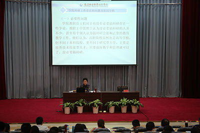 研討會結(jié)束前,郭素華院長就學(xué)院教科研工作的開展以及現(xiàn)代學(xué)徒制實踐探索兩個重點內(nèi)容跟大家進(jìn)行了探討和交流。郭院長指出,教科研工作是學(xué)院省示范性現(xiàn)代職業(yè)院校的建設(shè)工作中一項非常重要的內(nèi)容,學(xué)院將多策并舉激發(fā)教科研活力,提升教科研能力。郭院長提出,學(xué)院要緊跟政策導(dǎo)向,推動以學(xué)校、企業(yè)二元主導(dǎo)的現(xiàn)代學(xué)徒制技術(shù)技能人才培養(yǎng)模式的建立。