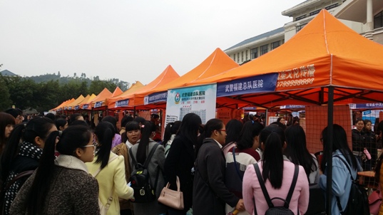1月9日上午,福建衛(wèi)生職業(yè)技術學院2016屆畢業(yè)生供需見面會在校園圖書館前廣場舉行,吸引了全省各地147家醫(yī)藥衛(wèi)生單位參加,提供就業(yè)崗位3000多個。招聘會現場氣氛濃烈,人頭攢動,多家衛(wèi)生醫(yī)療單位、醫(yī)藥企業(yè)擠滿了咨詢的畢業(yè)生,用人單位也根據需求,閱覽畢業(yè)生簡歷,與畢業(yè)生親切交流、吸引人才。學院黨委書記林春明、副院長魏立娜親臨招聘會現場,與企業(yè)相關負責人親切交流,了解用人單位需求,各系部黨總支書記和畢業(yè)生輔導員到現場與用人單位接洽溝通,為畢業(yè)生應聘提供指導和服務。福建教育電視臺和海峽都市報對本次招聘會情況進行了報道。