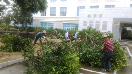 臺風(fēng)“蘇迪羅”過境后,后勤處和物業(yè)部門及時清理路障,清掃斷枝落葉、扶救傾倒樹木,盡快讓校園恢復(fù)往日的整潔、美麗。(黨委工作部)