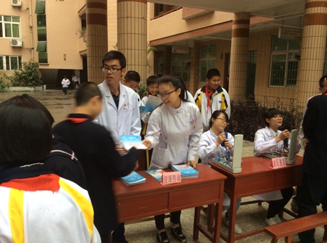 在急救技能培訓(xùn)的同時,我院志愿者還在十五中教學(xué)樓下,開展了健康咨詢和義診活動,內(nèi)容包括了安全用藥知識普及、測量血壓血型、分發(fā)健康宣傳手冊等,還開設(shè)了以“口腔保健”、“常用藥品使用”、“燒傷診療”為主題的三個小講堂。整場活動氛圍熱烈,獲得了在場師生的歡迎和好評。